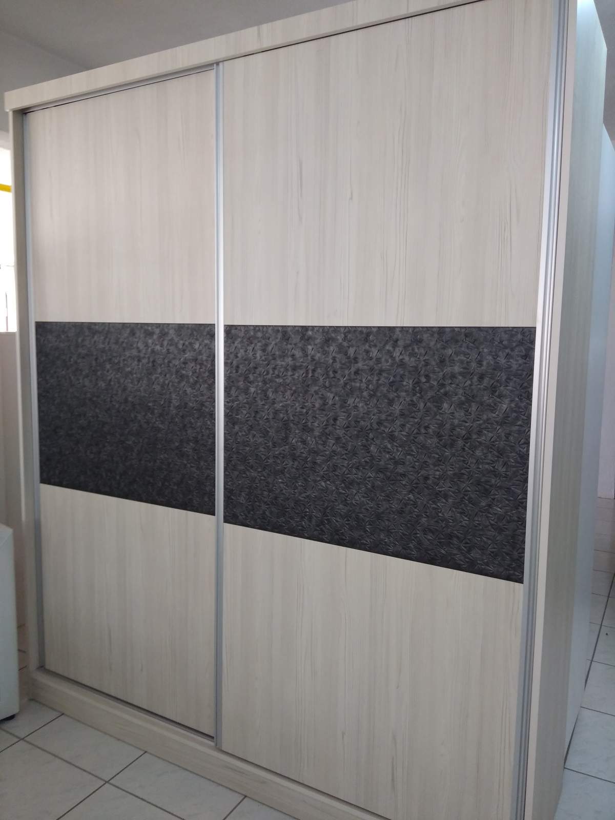 Ντουλάπα συρομενη ανοιχτοχρωμου χρώματος.