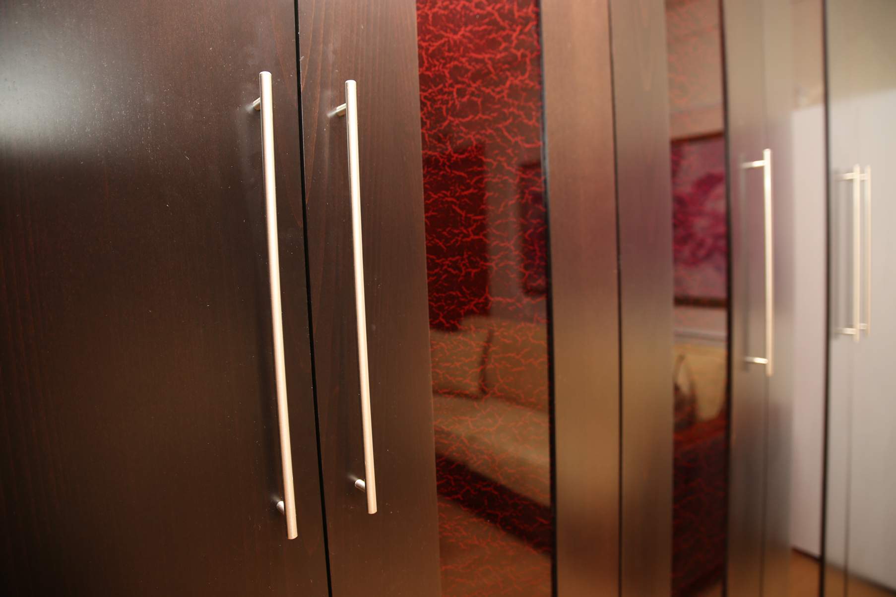 Ανοιγομενη ντουλαπα με εσωτερικα συρταρια και τζαμια lacobell σε μπορντο χρωμα