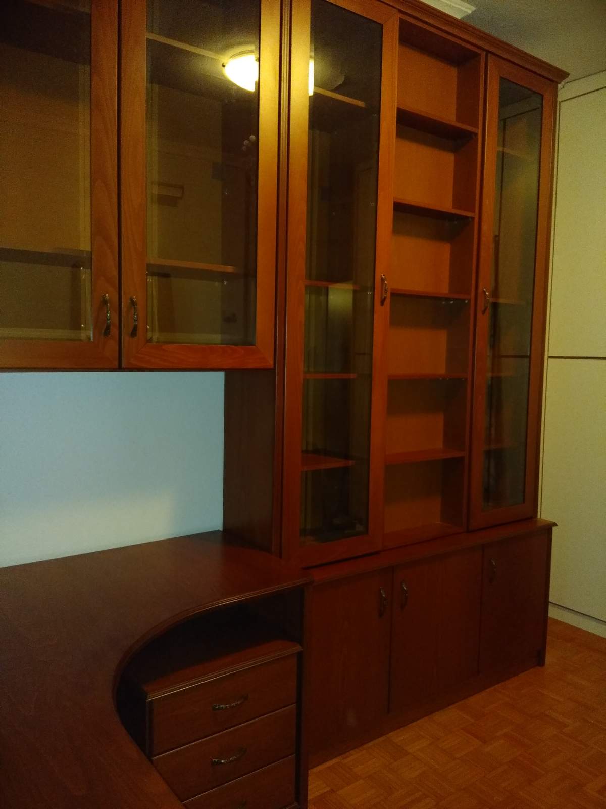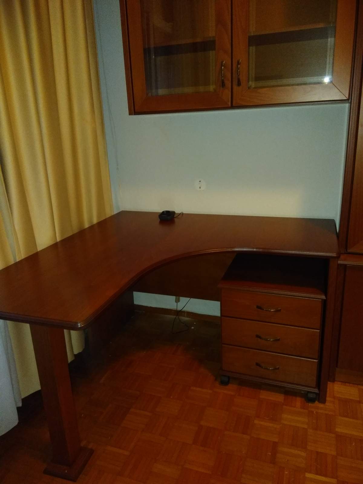 Κλασικη συνθεση σε οξια με γωνιακο γραφειο τροχηλατη συρταριερα
